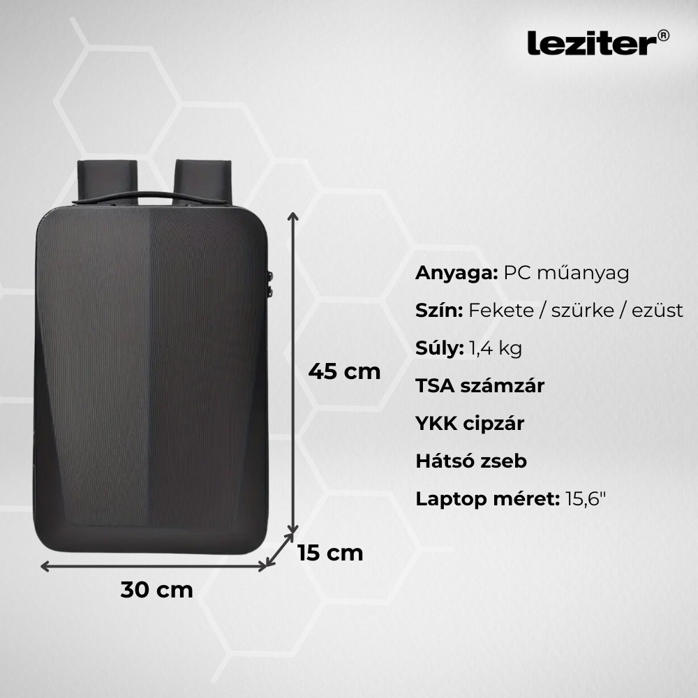A Leziter Axen merevített USB-s laptop hátizsák mindezt megoldja. Hardshell kialakítású, karc- és ütésálló PC műanyag borítása hosszú élettartamot biztosít, és még a mostoha időjárás sem jelent akadályt: vízlepergető kivitele esőben és hóban is megóvja az eszközeidet. A teljes biztonságról a TSA jóváhagyott háromjegyű számzár gondoskodik – egy olyan nemzetközileg elismert zártípus, amit a repülőtéri hatóságok kulccsal nyithatnak fel sérülés nélkül, így utazás során is biztonságban tudhatod értékeidet.