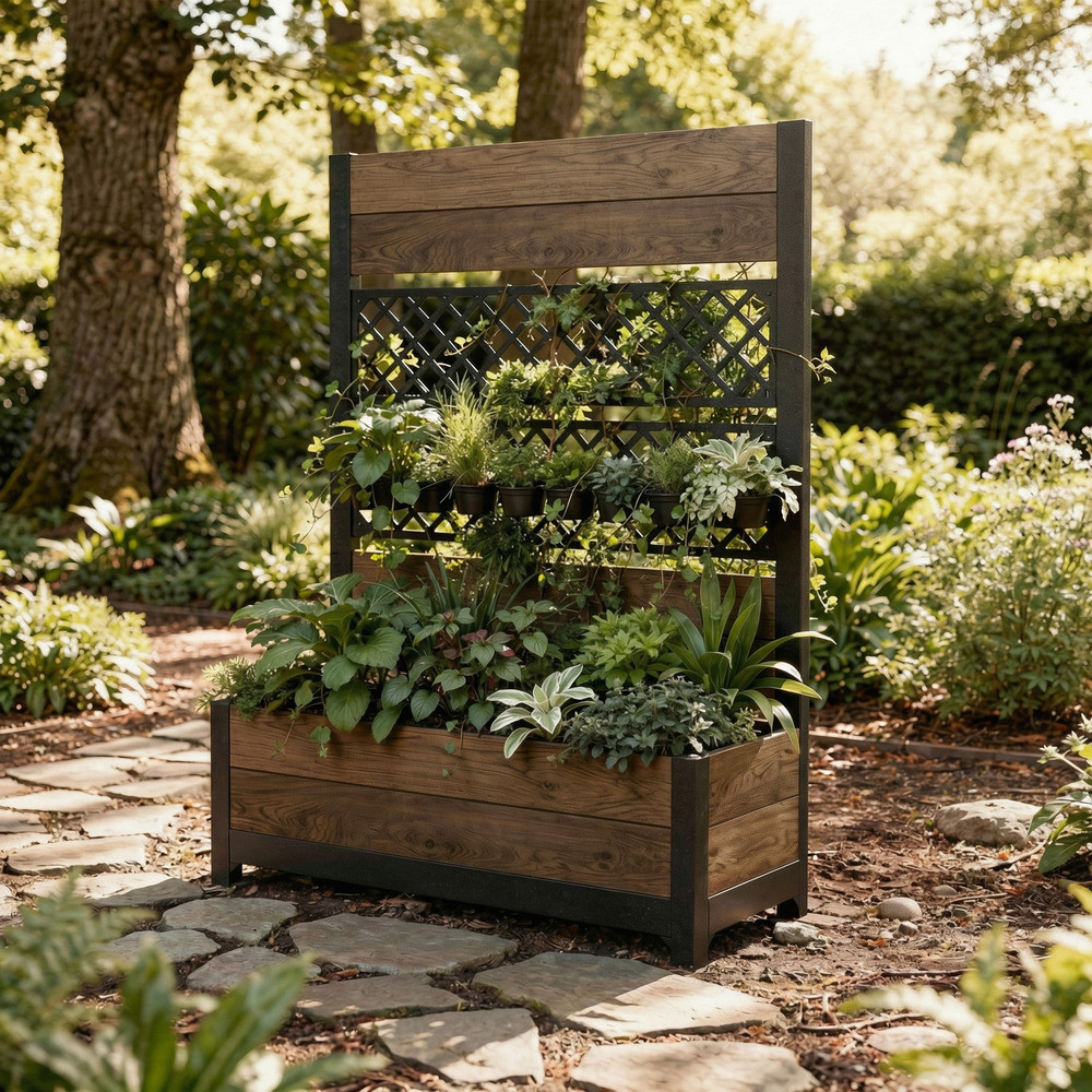 Időjárásálló műanyag kerti láda természetes diófa hatású megjelenéssel