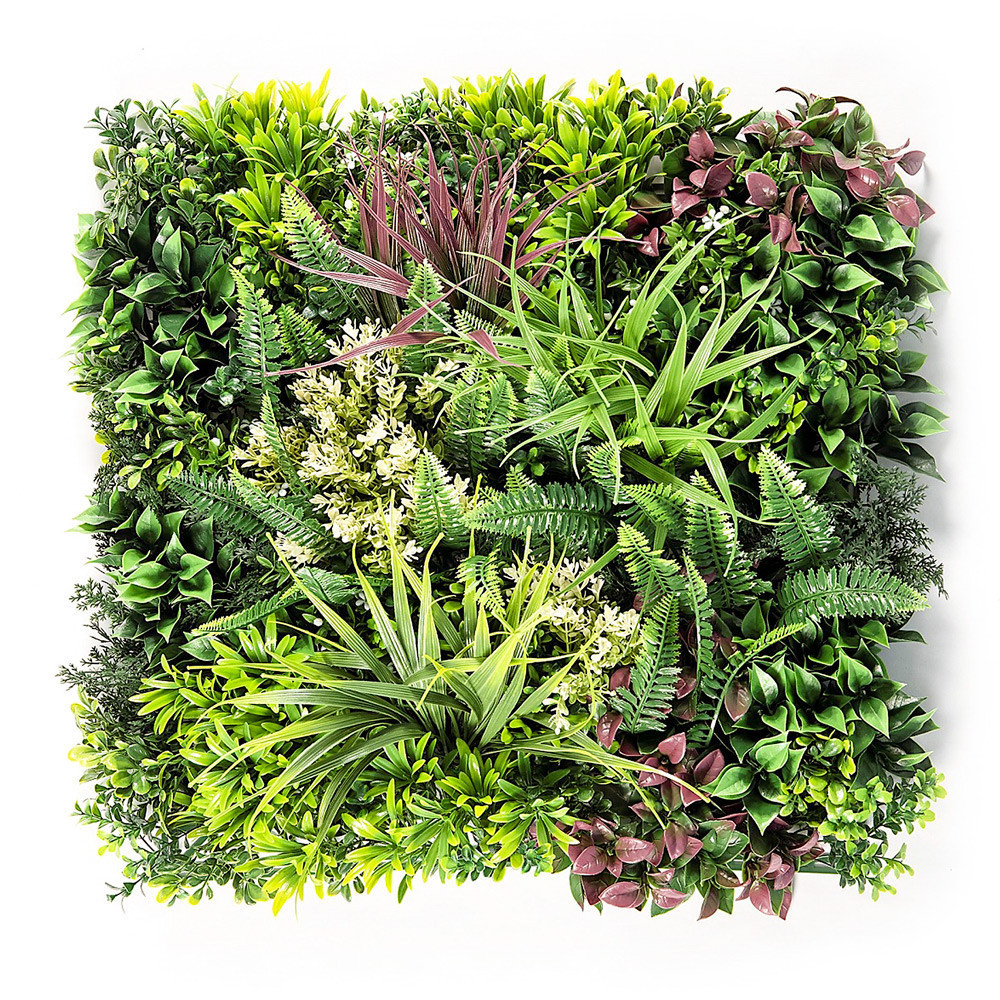 A modern műnövényes panel a növényzet és a természet hosszan tartó hatása öntözés nélkül. Megnövekedett fakulás és szennyeződés elleni ellenállás jellemzi.