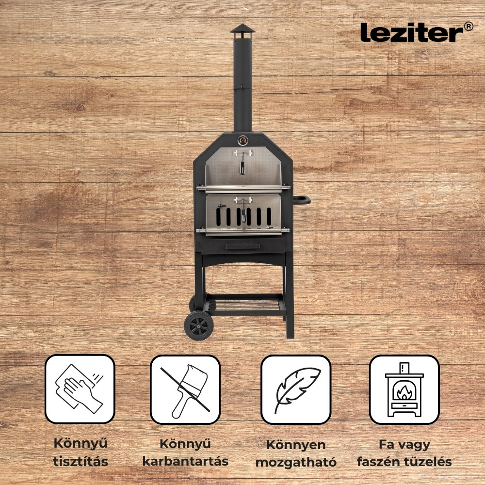 • Tűzifa vagy faszén tüzelés – hagyományos, füstös aromákhoz