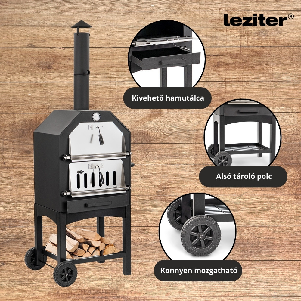 A sütő használata könnyedén elsajátítható, a karbantartás pedig gyors és problémamentes. A kivehető hamutálca megkönnyíti a takarítást, míg a porszórt acélfelület ellenáll a szennyeződéseknek és időjárásnak. A sütés után elegendő egy mozdulat, és a kemence újra készen áll a következő lakomára.