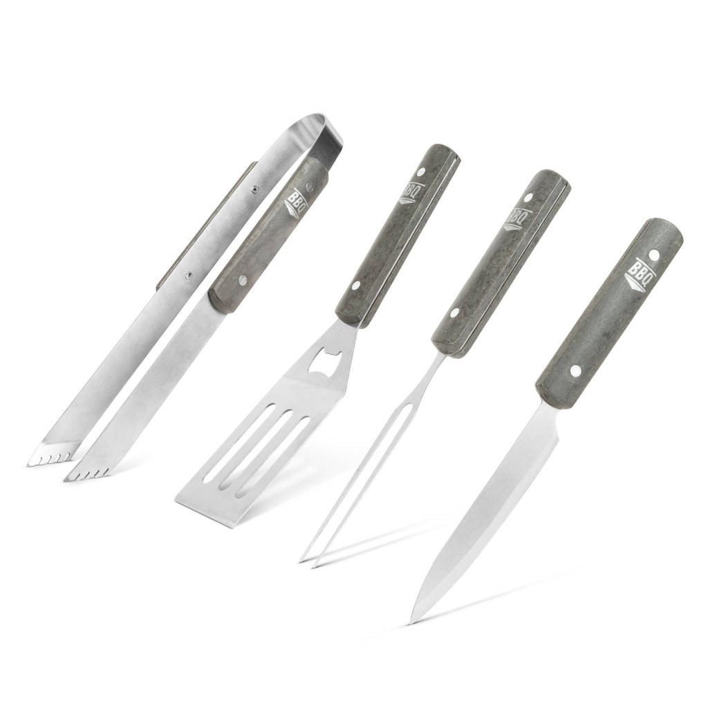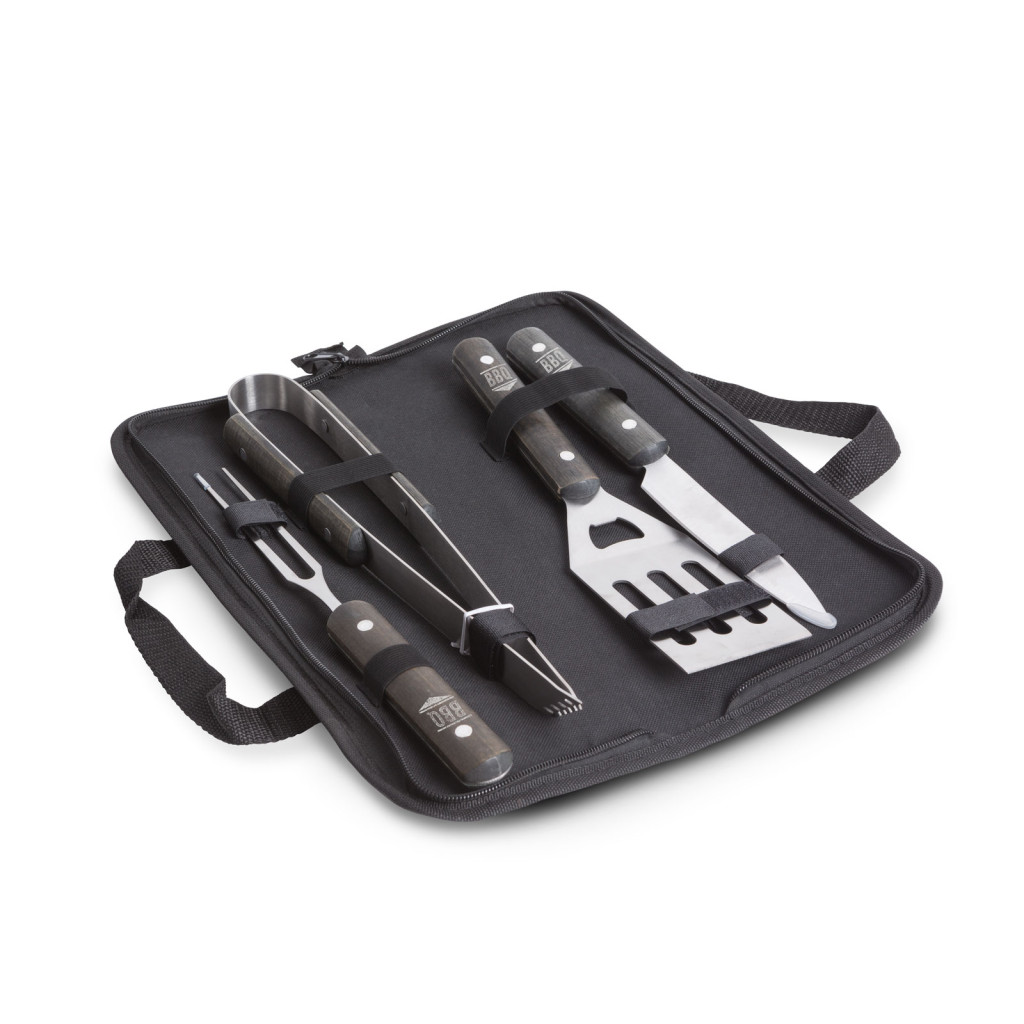 Grillező eszköz szett - 4 db-os - fa nyéllel, táskában