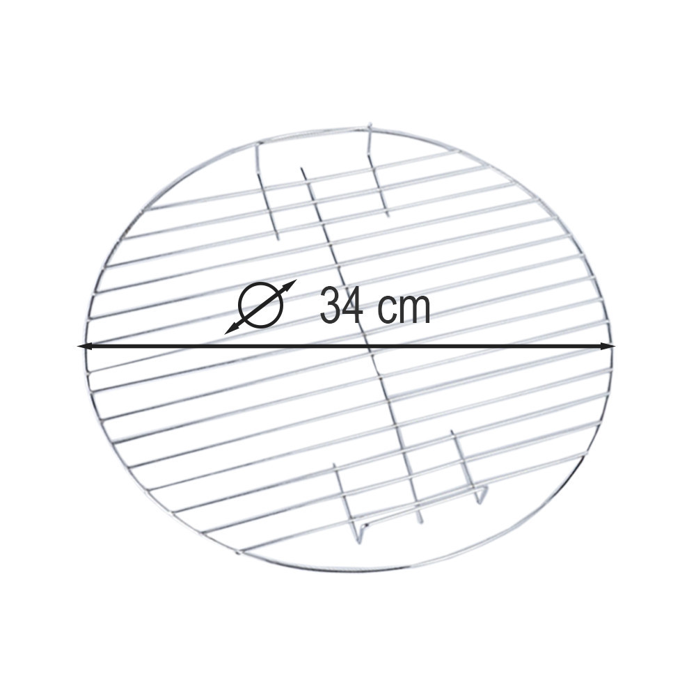 Ez a 34 cm átmérőjű kerek grillrács alkalmas faszenes grillekhez, biztosítva az egyenletes hőelosztást és a tökéletes sütési eredményt. A krómozott acél felület ellenáll a hőnek és könnyen tisztítható, így hosszú távon is megbízható társ a grillezésben.