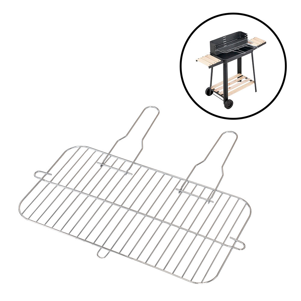 A 53,5 x 28 cm minőségi rozsdamentes acél grillrács pontosan illeszkedik a Multifunkciós faszenes kerti grillsütőhöz, így maximális sütési élményt nyújt. Az optimális hőelosztásnak köszönhetően az ételek mindenhol egyenletesen átsülnek, a simított felület pedig minimalizálja a tapadást, így a takarítás is pillanatok alatt elvégezhető.