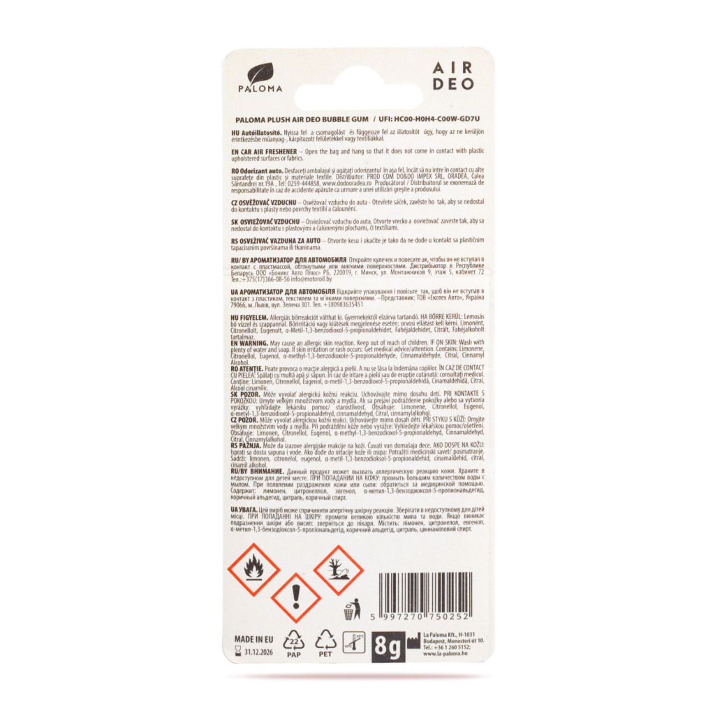 Illatosító - Paloma EMO Plush BUBBLE GUM