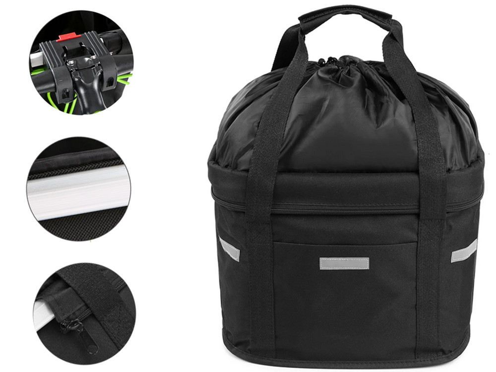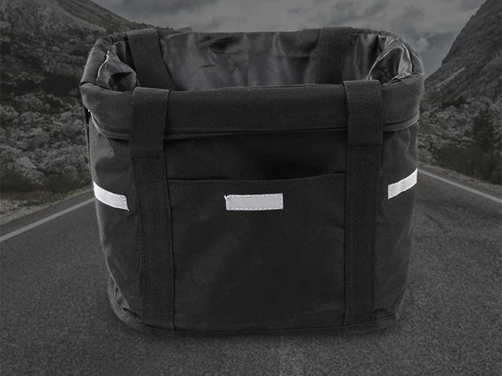Elöl, kívül a kosár el van látva egy további zsebbel a kisebb tárgyak számára és fényvisszaverőkkel a kerékpáros láthatóságának javítása érdekében.