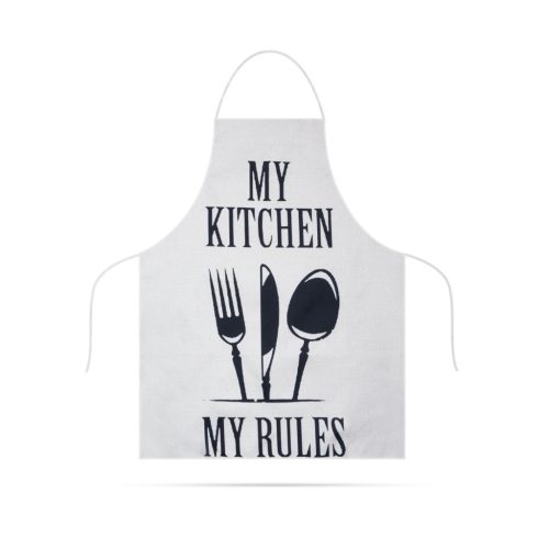 Praktikus kiegészítője a konyhai főzéseknek, kerti sütögetésnek. Megvédi ruháját a zsírfoltoktól, szennyeződésektől. A poliészter anyagnak köszönhetően mosható, vasalható.