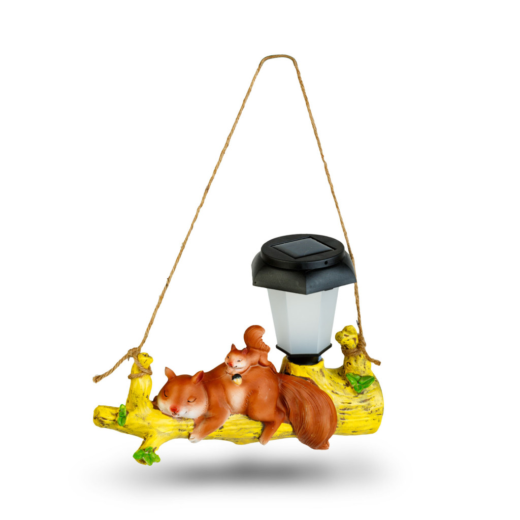 LED-es szolár állatfigura - mókus - akasztható - melegfehér LED - 25 x 6 x 19 cm