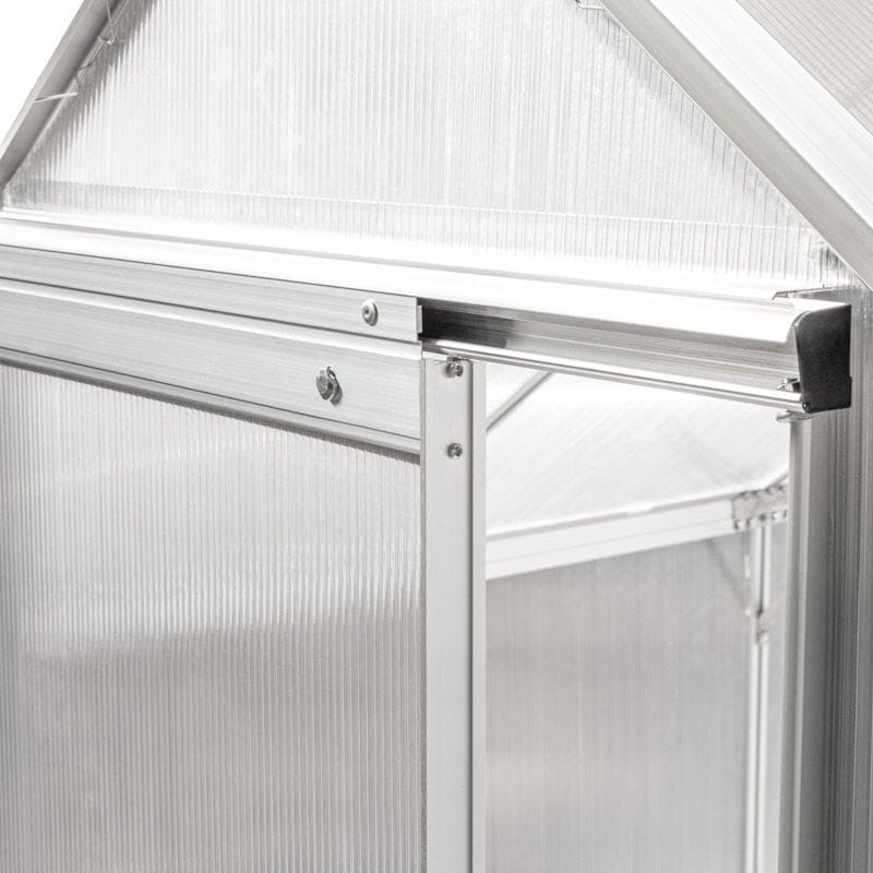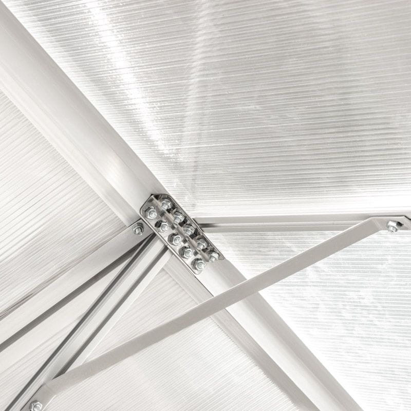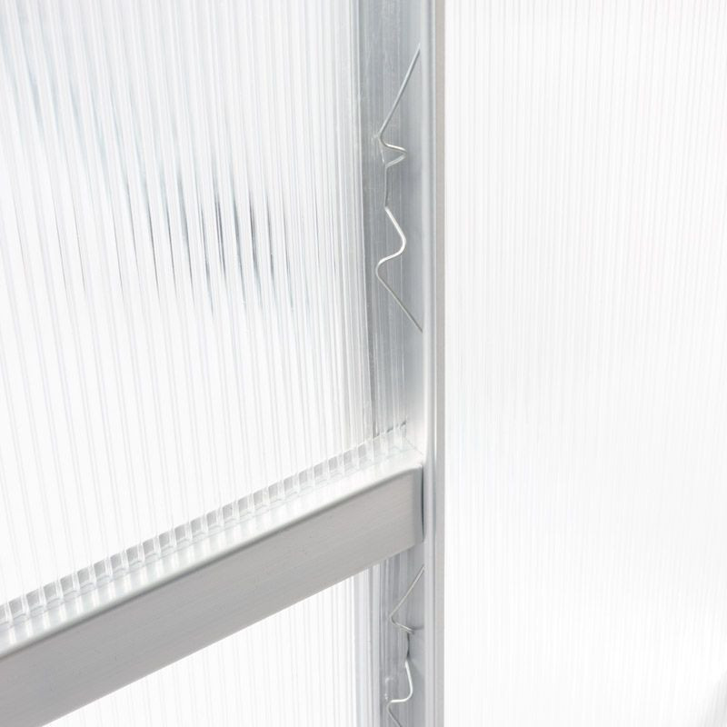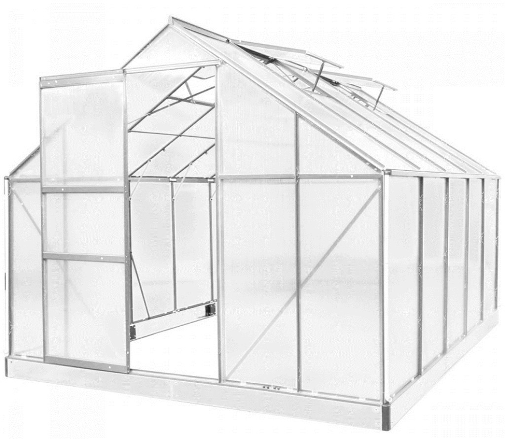 Az üvegház vázszerkezete alumíniumból készült, ami hatékonyan minimalizálja a korrózió kockázatát . Az acél alapzat jelentősen hozzájárul a kerti üvegház szerkezetének stabilitásához és szilárdságához. Ennek a szerkezetnek további előnye a könnyű összeszerelés és a lehetőség, hogy bárhol elhelyezhető a kertben vagy a telken.