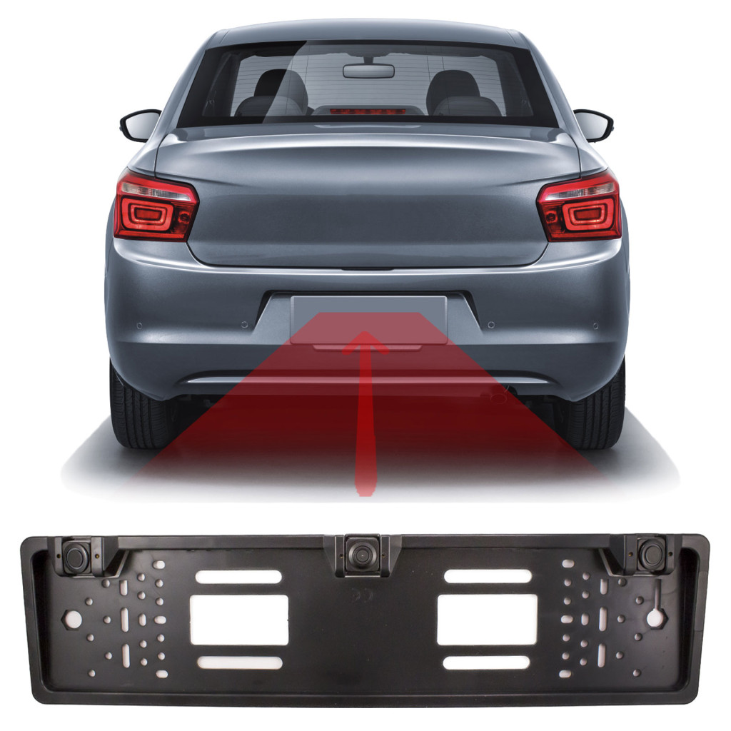 Cserélje le hagyományos rendszámtábla tartóját erre a kamerával és szenzorokkal szereltre. A rendszámtábla világításnál egyszerűen bevezetheti a kábeleket. A kamera függőleges dőlésszöge széles tartományban állítható. A szett része két ultrahangos szenzor is, melyeket szintén a rendszámtábla keretbe építhet be. A vezérlőegységet és a csipogót száraz, nedvességtől mentes helyre telepítse.