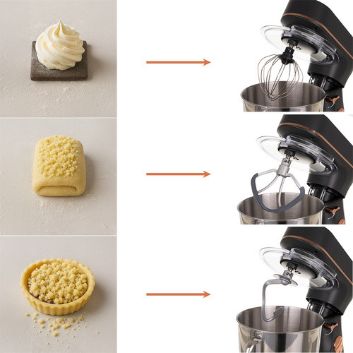 - A készlet mindent tartalmaz, amire szükséged van: egy horgot a sűrű tésztákhoz, egy habverőt a könnyű habokhoz, egy habverőt a közepesen sűrű masszákhoz és egy praktikus tálfedőt, amely megvéd a fröccsenéstől, és lehetővé teszi a folyamat megfigyelését a munka megszakítása nélkül