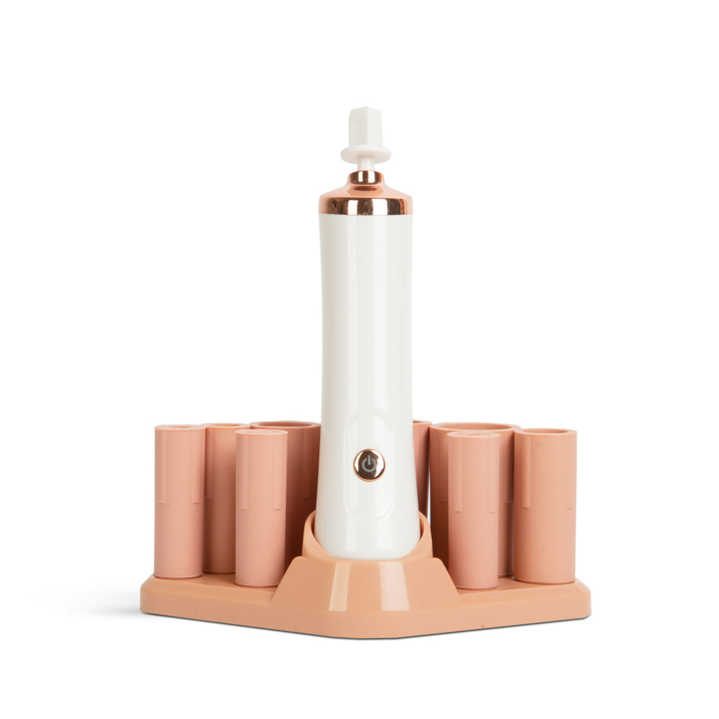 A maximális higiénia fenntartásában nyújt segítséget ez az automata sminkeszköz tisztító és szárító berendezés. Az ecset szárára erősítve, megpörgeti az ecsetet, amely akár a 7000 rpm sebességet is elérheti, így távolítva el minden szennyeződést az ecsetfejből. A szett része a tisztítóedény fröccsenésgátló fedéllel és a legnépszerűbb ecsetméretekkel kompatibilis adapterkészlet.
