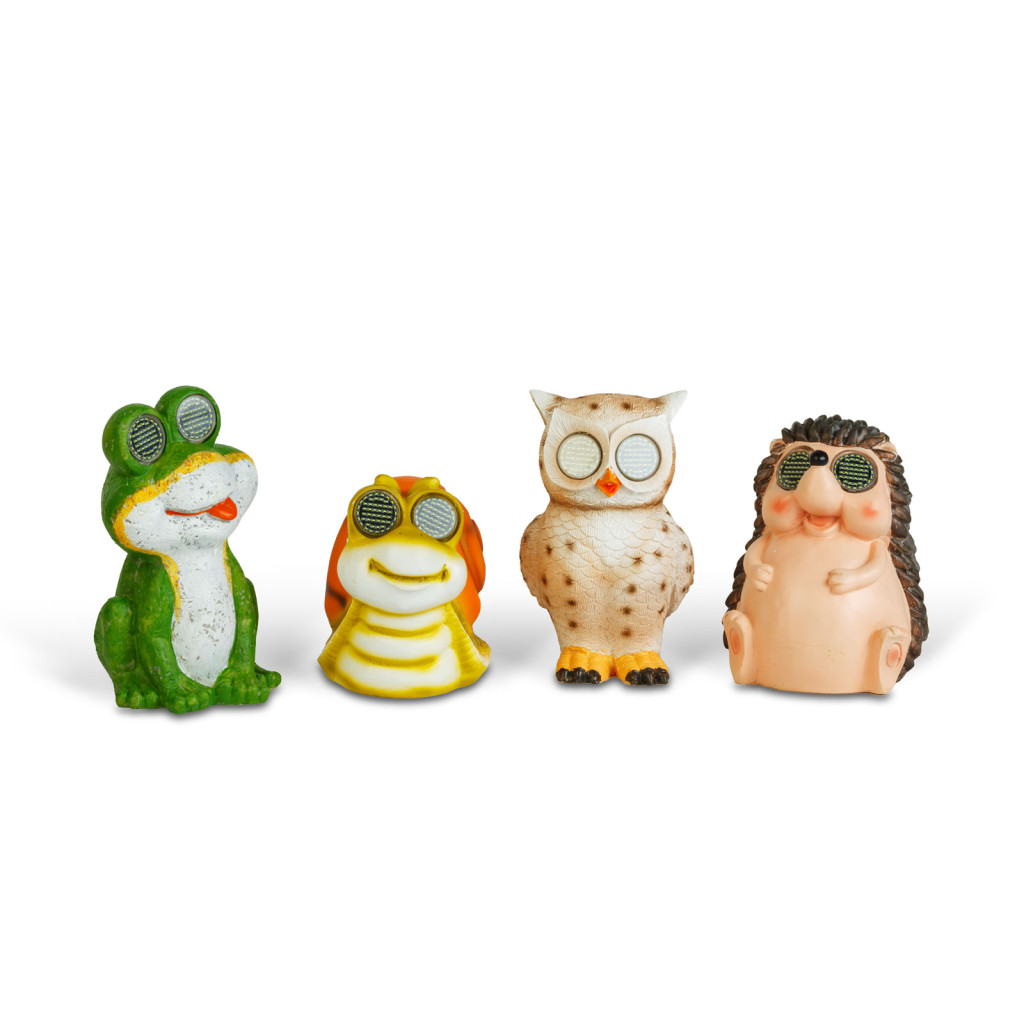 Tegye bájos, játékos hangulatúvá kertjét vagy erkélyét ezekkel a napelemes állatfigurákkal! A teknős, a csiga, a süni és a bagoly kedves arccal várják a napfényt, hogy estére fehér SMD LED-jeikkel „felvillantsák” mozgó szemüket. A szemekben található 104 db LED lehetővé teszi a tekintet áthelyezését, pislogást, garantáltan mosolyt csalnak mindenki arcára.