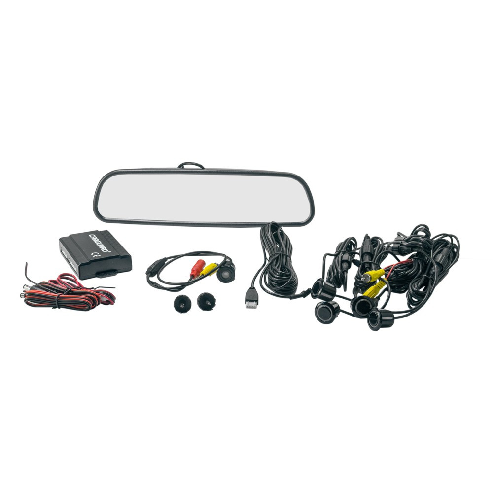 Ez a professzionális parkolórendszer készlet ideális megoldás, hogy extra biztonságot és kényelmet biztosítson a parkolás során. A csomag tartalmaz egy videó kijelzős visszapillantó tükröt, egy hátrameneti kamerát, egy központi egységet és négy kiváló minőségű parkolóradart, melyek a jármű színére festhetőek. A szenzorok 19 mm-es mérettel rendelkeznek, és 0-150 cm közötti érzékelési tartománnyal bírnak.