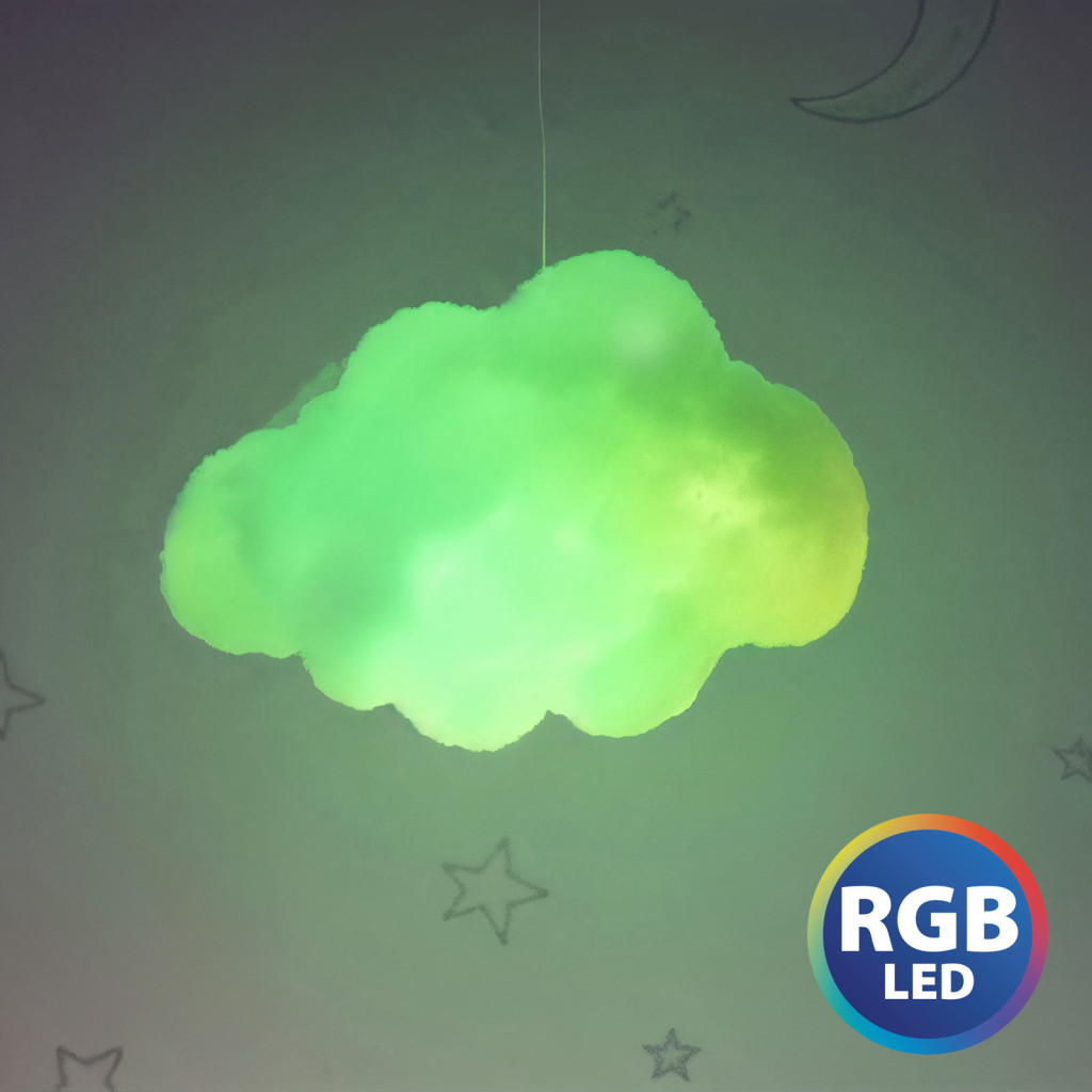 Teremtsen egyedi és megnyugtató atmoszférát ezzel a különleges felhő alakú lámpával! A puha, vatta anyagból készült dekoráció varázslatos, lebegő hatást kelt, miközben a közepébe rejtett LED-ek sejtelmes fénnyel világítják meg a felhőt. A 16 db állítható színű és fényerejű LED-del rendelkezik, így minden alkalomhoz és hangulathoz tökéletesen illeszkedik. A négy különböző világítási effekt lehetővé teszi, hogy lámpája mindig az Ön igényeihez igazodjon, legyen szó pihentető, lágy fényekről vagy hangulatos, dinamikus villogásról. A lámpa energiatakarékosan működtethető, hiszen 3 darab AAA elemmel működik, így könnyedén elhelyezhető bárhol – legyen az hálószoba, nappali vagy gyerekszoba. A tartozék damil és akasztó segítségével felakasztva érhető el a maximális felhőhatás, de jól mutat polcon, íróasztalon, éjjeliszekrényen elhelyezve is.