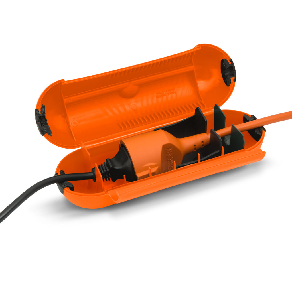 Kerti munkák során gyakran van szükségünk elektoromos szerszámokra, gépekre, melyekhez rendszerint hosszabbítókat használunk. Ezek csatlakozásának megóvására szolgál ez a védőtok, legyen szó nedvességről vagy szennyeződésről. A védőtok használata javasolt kisgyermekes családoknak is, hiszen megakadályozza, hogy a gyermek hozzáférjen az elektromos hálózat csatlakozóihoz.