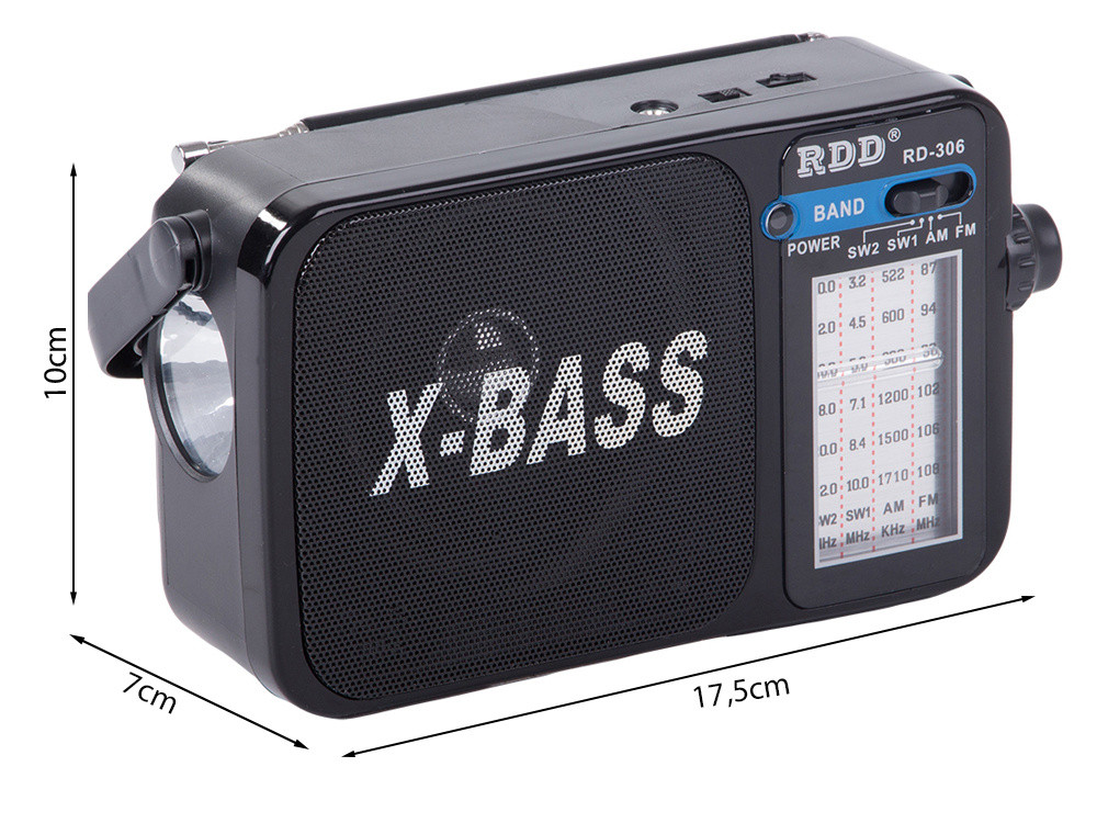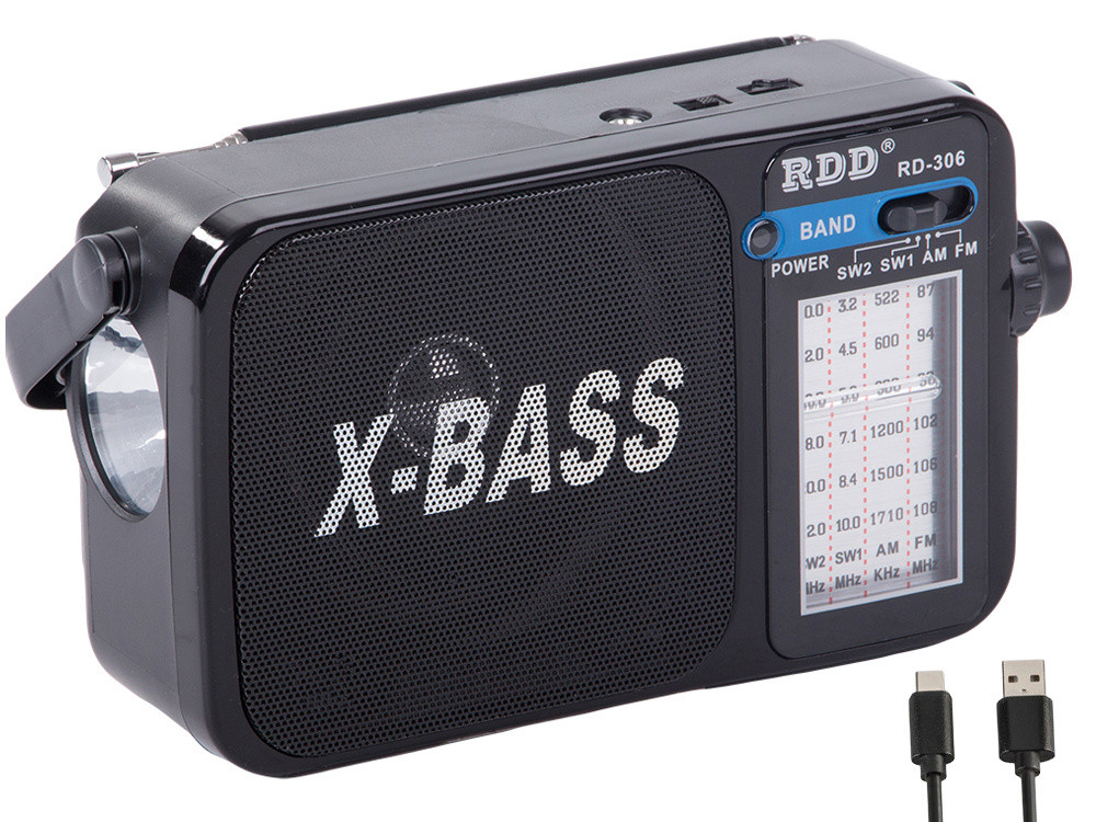 Az RDD RD-306 hordozható rádió ideális társ otthon, műhelyben, kempingben vagy az építkezésen. Négy rádiósávot (FM/AM/SW1/SW2) fogad, X-BASS erősítő rendszerrel rendelkezik a mélyebb és tisztább hangzásért, valamint beépített LED zseblámpával is ellátták. Újratölthető akkumulátorral és elemmel egyaránt működik, így minden helyzetben megbízható.