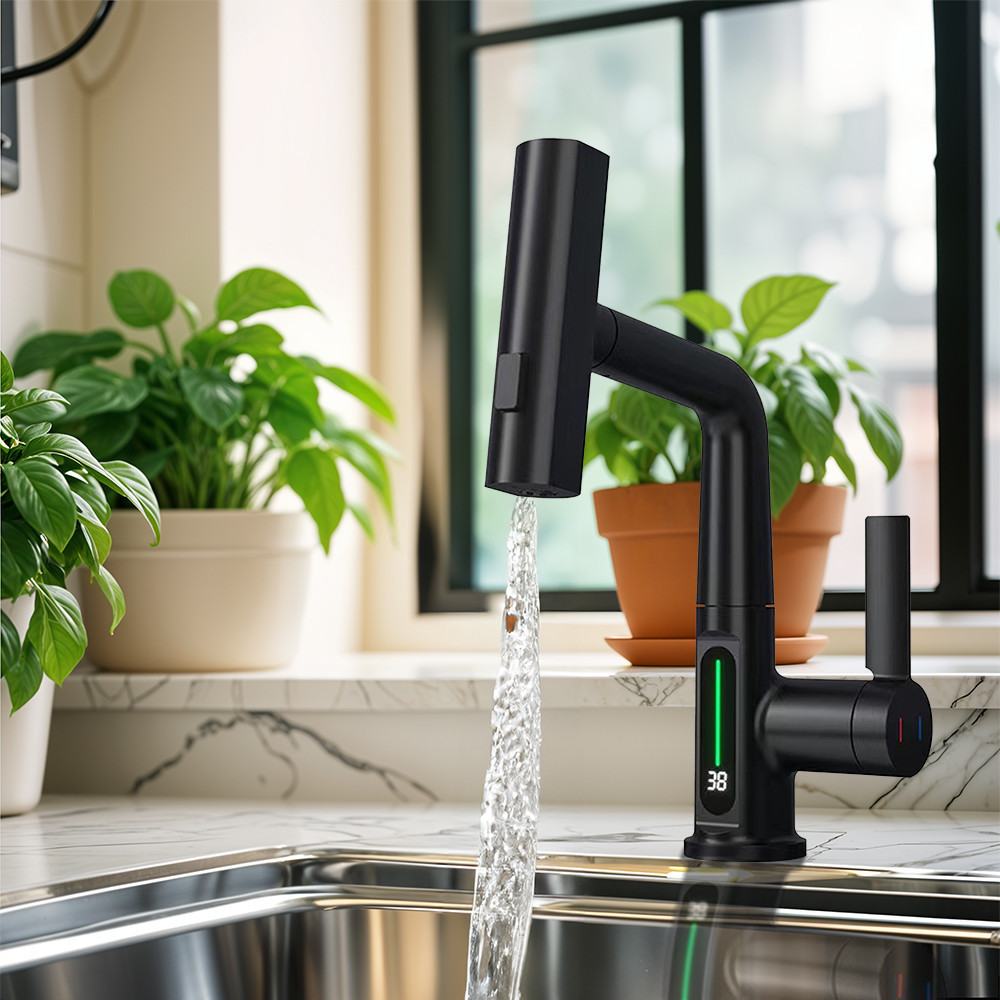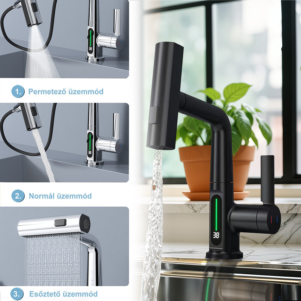 Mara mosogató csaptelep multifunkciós fejjel digitális kijelzővel fekete