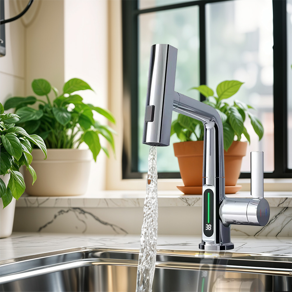 Mara mosogató csaptelep multifunkciós fejjel digitális kijelzővel króm